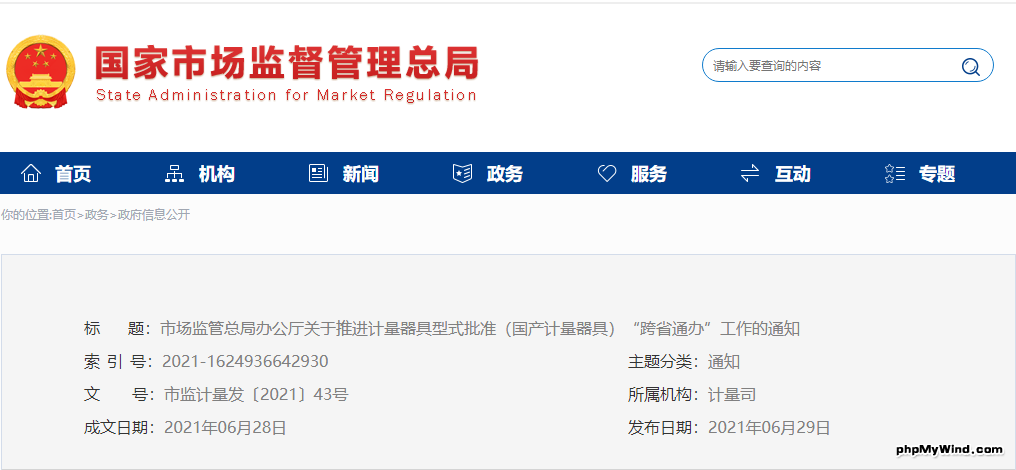 为深入贯彻落实《国务院办公厅关于加快推进政务服务“跨省通办”的指导意见》(国办发〔2020〕35号,以下简称《指导意见》),持续深化“放管服”改革,优化政务服务,减少企业成本,现就推进计量器具型式批准(国产计量器具)“跨省通办”工作通知如下: